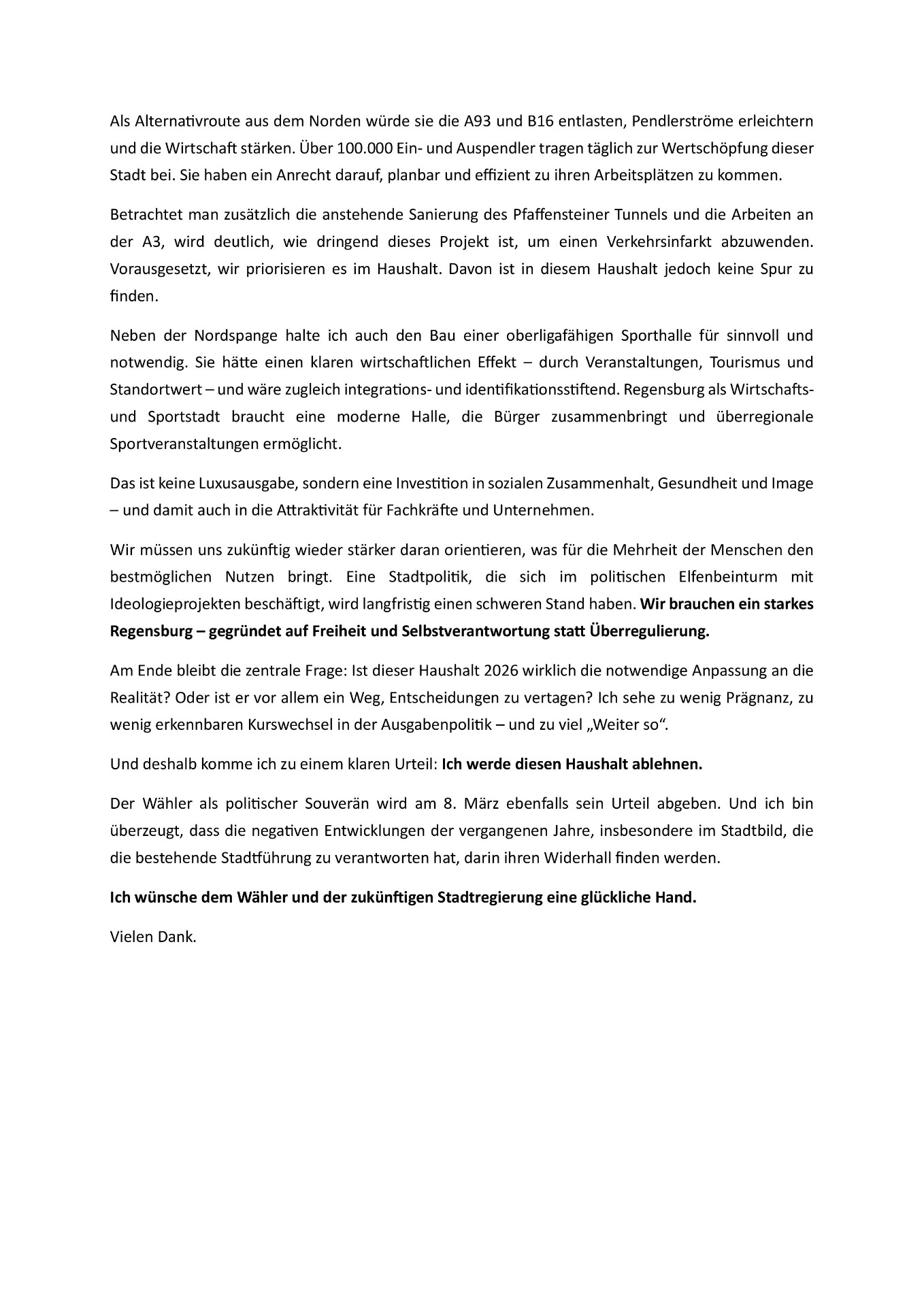 Weitere Schwerpunkte sieht die Partei im